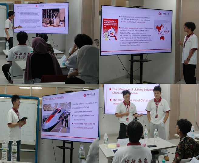 除了企业参访活动,雅加达国立大学还精心为本次研习活动开设了两门特色课程。在商务沟通课上,Andi老师解析了沟通策略的含义与有效沟通的七大核心原则。在实战演练环节,学员随机抽取筷子、笔、橡皮擦、鼠标等日常用品,进行三分钟全英文即兴演讲。Andi老师对沟通框架的体系化梳理、对文化差异的敏锐洞察,以及对课堂的激情和投入,赢得了全体学员的高度赞誉。研习团成员认为,这堂课程使他们学到了高效沟通的方法论,突破了非母语演讲的心理屏障,提升了跨文化语境下的沟通能力。