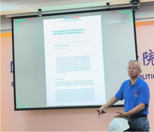 论坛上,许统生教授以《知识产权条款贸易协定的动态利益》为题,深入剖析国际经贸规则演变脉络,阐释其对国家创新体系的推动作用,从理论与实践层面解读知识产权保护在全球竞争中的核心价值。蒋含明教授则聚焦《数字基础建设与产业链供应链安全》,结合数字化时代产业发展趋势,探讨全球产业链的韧性构建与风险防控策略,为产业安全发展提供新思路。